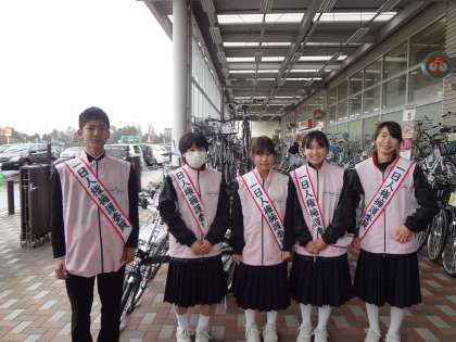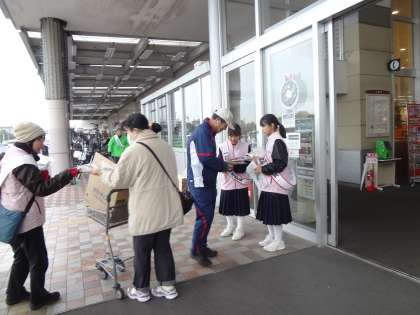 本日,生徒会執行部のメンバーで,イオン扶桑店において人権週間啓発運動に参加しました。雪の降る中で,人も少なかったですが,「おはようございます!人権週間です!」と挨拶しながら,粗品を渡していました。寒い中,よくがんばりました!