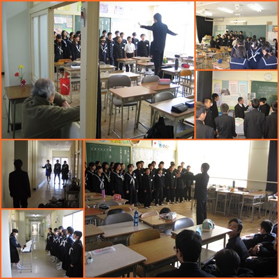 1年生の各学級では,力のこもった練習が行われています。写真は,今日の帰りのSTでの練習の様子です。他学年との交流会に臨むクラス,パート練習で音程の確認に余念がないクラス,廊下に出て声量アップに励むクラス,合わせ練習で表現力を磨くクラスなど,そのスタイルはそれぞれです。担任の先生もともに最高の合唱を目指して取り組んでいます。
