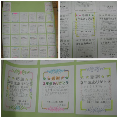 この気持ちを3年生に伝えられるよう感謝のメッセージを全員で書きました。来週,3年生に届けに行きます。