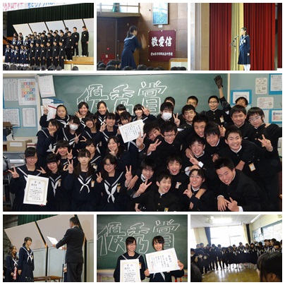 当日の直前練習では,絶望感のなかにも力強さを感じさせる伸びやかな歌声でしたが,本番のステージからは緊張がひしひしと伝わってきました。今日の生活日記『あゆみ』には「緊張していて一瞬で歌い終わってしまった」「今まで一緒に練習してきた仲間に感謝!」「悔しさもあるけど達成感がハンパない」「練習が楽しかった」「卒業にむけて合唱を引き続き頑張りたい」「みんなで取り組むことがこんなにも楽しいとは思わなかった」などたくさんの前向きな言葉が書かれており,合唱を通してみんなの成長を感じました。実は今日の昼放課も「蒼鷺」を歌ってくれました。素敵な合唱に心があたたかくなりました。ご家庭でも,たくさんの励ましの言葉をかけていただきありがとうございました。今後も,話を聞く姿勢NO.1,提出物NO.1,仲の良さ(絆の深さ)NO.1,合唱NO.1,態度NO.1・・・常日頃もNO.1!を目指して頑張っていきます。