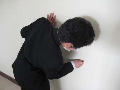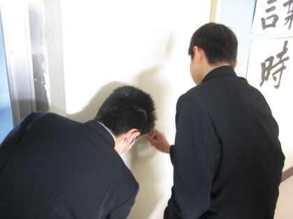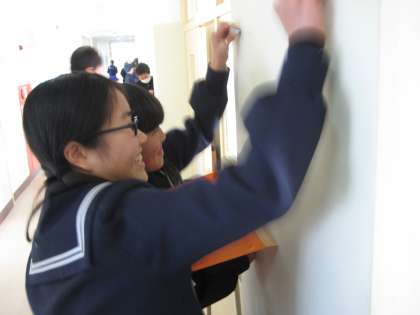 本年度,校舎の改修工事が行われ,壁は真っ白になりました。しかし,その反面,汚れも目立ってしまいます。それらの汚れを消しゴムでゴシゴシこすって,きれいにしてくれています。