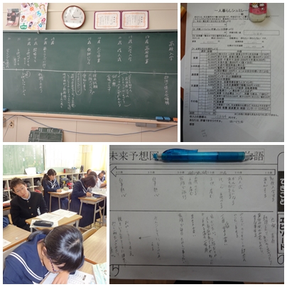 2年生の総合の時間に,25年後の40歳までの未来予想をしました。進学はどうするのか,就職はどうするのか,結婚はいつするのかなど,友だちと相談しながら真剣に考えていました。