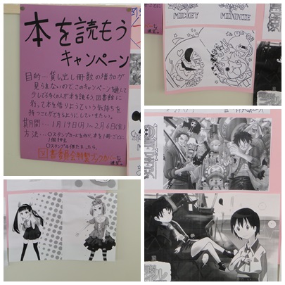 1冊でも多く本を読んでほしいという思いから、1月19日(月)〜2月6日(金)までの3週間、図書委員会が『本を読もうキャンペーン』を実施しています。