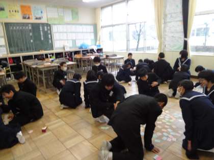 1枚でも多くとれるように,どの生徒も前のめりになりながら参加していました。練習でしたが,大盛り上がりで楽しめました。
