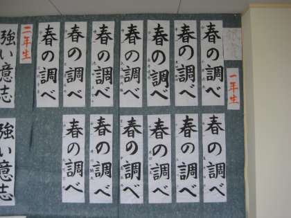 明日から3日間,学校公開の一環として「校内競書展」が行われます。今日までに各学年・各学級で準備は万端です。1階渡り廊下に展示されている優秀作品をはじめ,どれも1人1人の個性があふれる作品ばかりです。