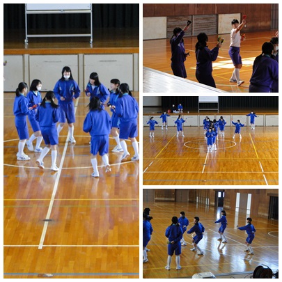 3年生女子の体育は現在ダンスで、鳴子をもって、「よっちょれ」という踊りを練習しています。ただ、覚えるだけでなく、個人やグループで創作する場面もあり、毎時間生徒たちは一生懸命練習に励んでいます。今日、4・5組が最後のダンスの授業でした。お互いの作品を鑑賞し、ダンスの学習を振り返りました。