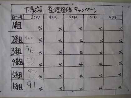 1年生の生活向上キャンペーン第2弾として,昨日から「下駄箱の靴のかかとをそろえようキャンペーン」が始まりました。