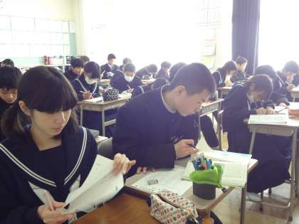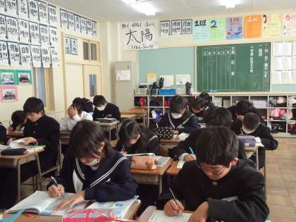 今日の3時間目に1年3組で国語の自習を行いました。与えられた課題を私語無く,全員が集中して取り組むことができていました。これぞ,自習の手本ですね!