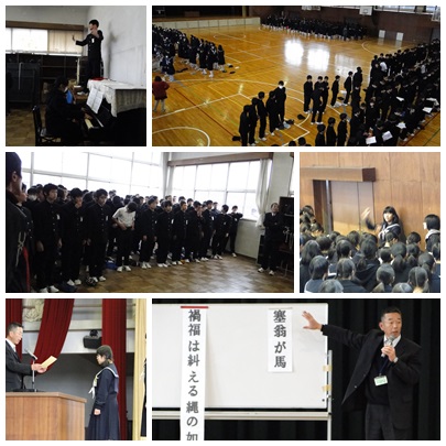 校長先生からは、2つの故事ことわざを例えにして、「幸せ」と「不幸は」表裏一体である、というお話がありました。2つの故事とは「塞翁が馬」と「禍福(かふく)は糾(あざな)える縄の如し」です。ぜひ、調べてみて下さい。