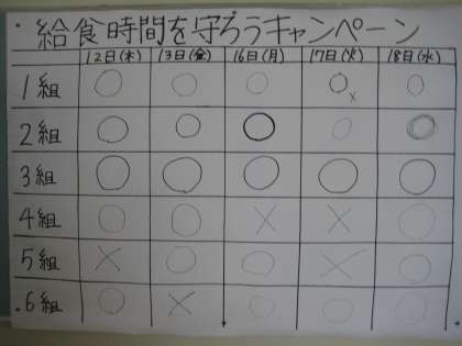 本日まで1年生において行われていた「時間通りに『いただきます』キャンペーン」の結果を報告します。