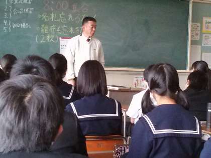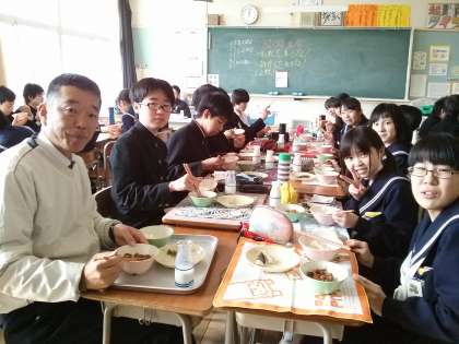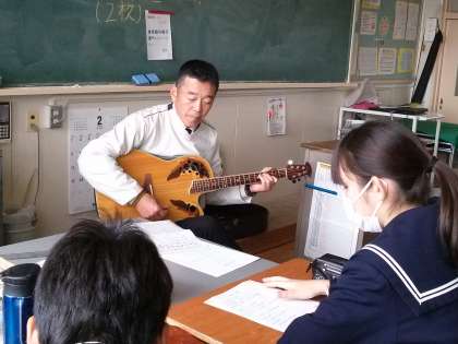 今日の給食では、3-2に校長先生に来ていただきました。緊張ぎみな3-2でしたが、最後にギターの弾き語りをプレゼントしていただき、活力をもらいました。歌っていただいた長渕剛のstay dreamは担任の社本先生にちなんだ曲です。3-2のみんなも夢をもって熱くなりたいですね。校長先生、ありがとうございました。