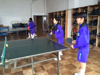 今日は卓球の授業を行いました。ペアで対戦している様子です。スマッシュが決まりました。