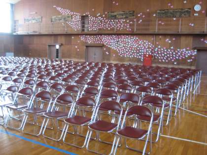 ※練習中の写真を取り忘れてしまったため,生徒のいない会場の様子を写真に納めました。会場が整っていくと,いよいよ卒業式を実感させられます。