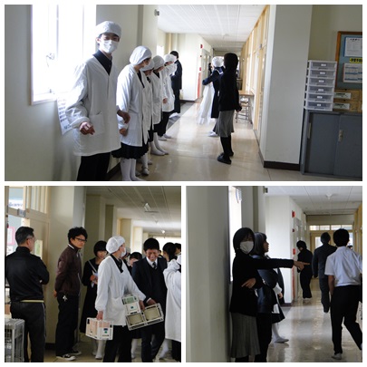 4時間目が終わると、待ってましたとばかりに、3年生の先生たちが職員室を出て行きました。向かった先は、1,2年生のフロアー。給食指導に行かれたのです。特別教室からゆっくり戻ってくる姿、なかなか当番が全員そろわない様子に、『ちょっと、遅いわね!』とポツリとつぶやく声が聞こえてきました。これから毎日3年生の先生が出動します。1、2年生のみなさん、合格点をもらえるように頑張りましょう。