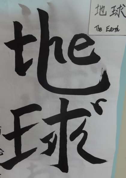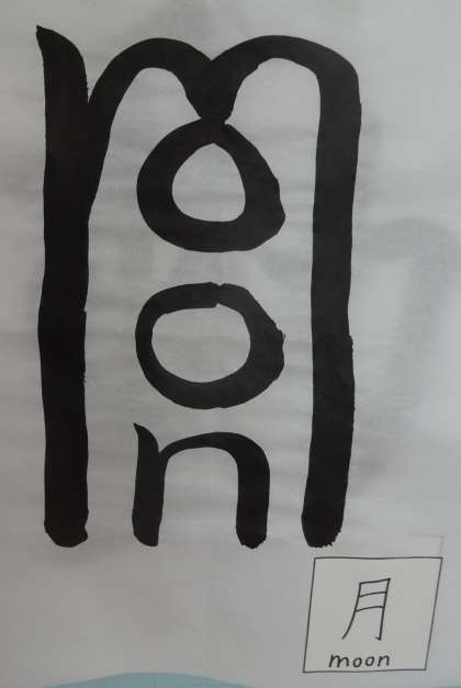 今回の遊字アートは,英語で漢字を作るというものでした。よく考えてある作品ばかりでした。その中から,一部紹介します。