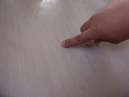 無言清掃を目指して毎日一生懸命清掃をしています。廊下を上履きで歩くとどうしても黒い汚れが出来てします。それを一生懸命こすると、けすことが出来ます。廊下掃除では拭き掃除が終わった後に一生懸命に廊下をこすっています。写真はこする前後の写真です。