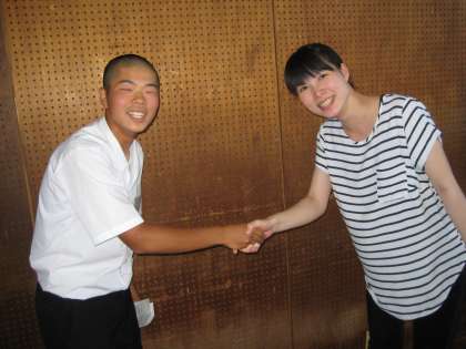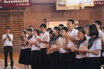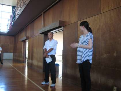 集会が始まったところで,突然声があがりました。陸上選手激励会で活躍した応援団長が再登場し,田中先生への感謝の言葉を語り出しました。