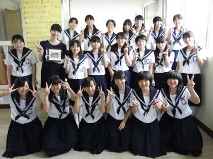 バレーボール部は、明日からお休みに入られる田中先生に、顧問として3月まで大変お世話になりました。4月から美術の顧問にかわられてからも、バレーボール部のことをいつも気にかけていただいていました。感謝の思いを込めて、田中先生に部員全員からメッセージを送りました。部長の佐藤さんは、田中先生に夏の大会での頑張りを誓っていました。