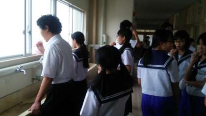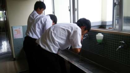 今日は昨日よりたくさんの生徒が歯みがきをしていました。歯みがきはいろいろな病気の予防にもなります。家でもしっかりみがいてください。
