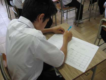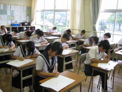 今日までに,全員合格を目指して,授業や家庭学習で繰り返し練習してきました。今日はその成果を発揮しようと,多くの生徒が集中して取り組む様子が見られました。