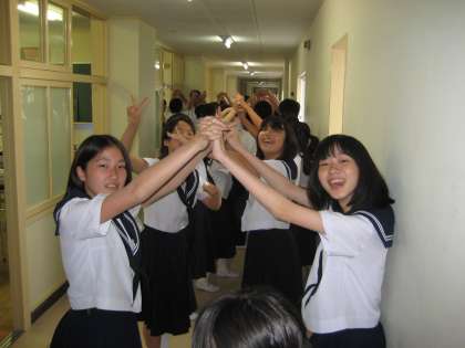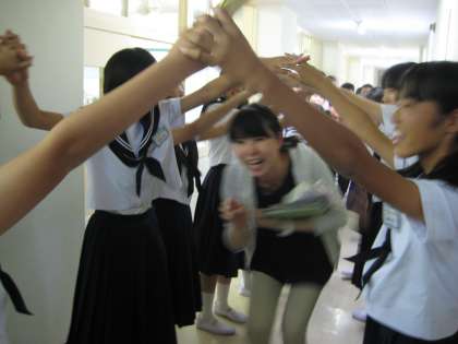 その後,田中先生を心を込めて送りだそうと,2組みんなでアーチをつくってお見送りをしました。すると,隣の3組の生徒たちも気づいて,アーチに参加してくれました。