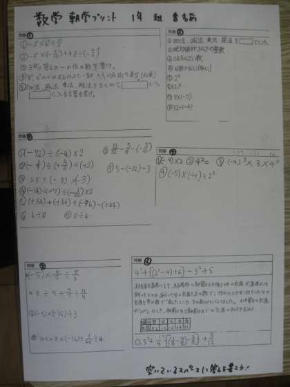 今週はテスト週間なので、いつもより朝の学習の問題が多いです。