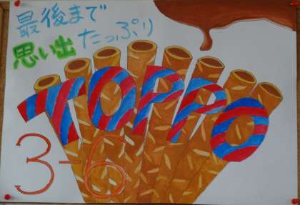 お菓子のTOPPOの中身が,チョコレートたっぷりなように,素晴らしい思い出をみんなでたっぷり作っていこうという願いが込められています。