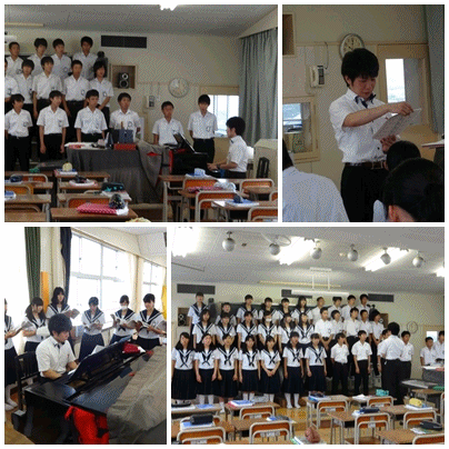 今日の授業(3年生) 公開日 2015/06/16 更新日 2015/06/16 3年生 4組では,音楽授業をしていました。発声練習をした後,「生命がはばたくとき」「大地讃頌」を歌いました。それから,合唱コンクールの学年合唱曲である「河口」のパート別練習を行っていました。 いいね(0)