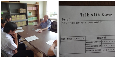 今日の授業(3年生) 公開日 2015/06/23 更新日 2015/06/23 3年生 3組の英語の授業では,数人ずつスティーブン先生と英会話をしていました。日本語を一切しゃべらず,スティーブン先生と会話をしていました。 いいね(0)