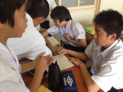 7月2日にある計算コンクールの合格に向けて、放課も特訓をしています。わからない問題は友達に聞いて理解しようと頑張っています。内容はプラス、マイナスのかけ算、割り算などです。