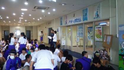 海の活動の準備をして、昼食会場集合です。天候が心配です。