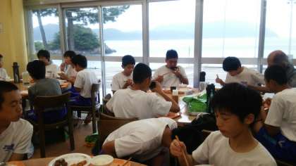 晩御飯をいただきました。次は、トビーホールで漁り火の集いです。