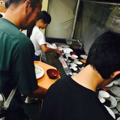 夕食を食べ終えて、各自自分が使った食器を洗っています。いつもよりちょっと早い夕食です。