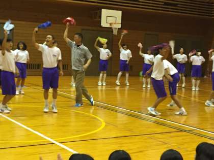 5組のタオルバフォーマンスには校長先生も登場です。