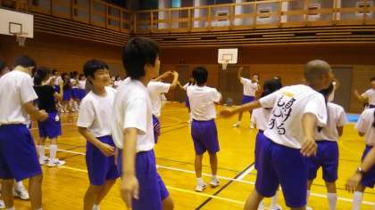 漁り火の集いも終わり、雨があがるまで、じゃんけんゲームをしたり、歌を歌います。