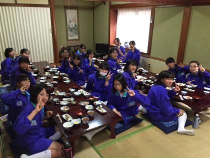 民宿での朝食に大満足の生徒たちでした。