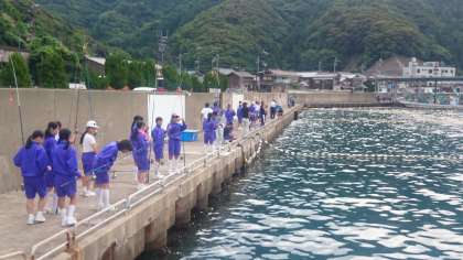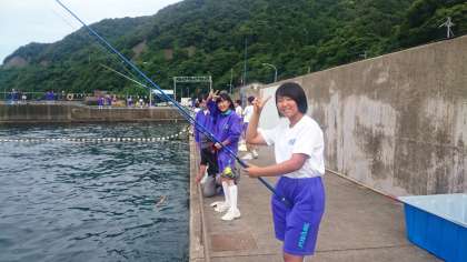 漁村活動の海釣り中です。