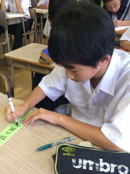 3時間目1年5組は七夕の短冊を書きました。この夏の目標を書いている生徒が多かったです。叶うといいな♪