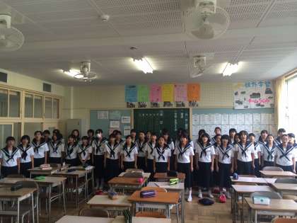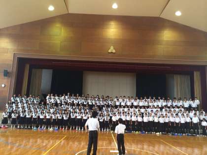 1年生は学年で歌練習をしました。パートごとに分かれて20分、その後全体で入退場を含めて30分みっちり歌いました。小学校の先生を感動させられるような歌が披露できるよう頑張ります。