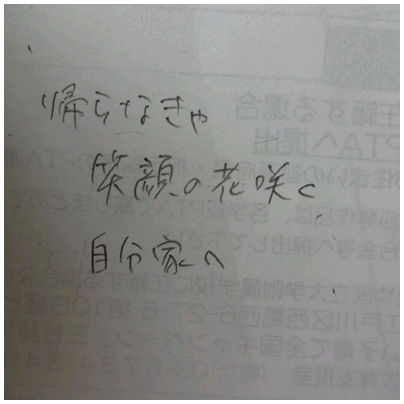 今日の授業(3年生) 公開日 2015/07/02 更新日 2015/07/02 3年生 今日の学活は,夏休みの一研究の計画と「楽しい子育て全国キャンペーン」〜親子で話そう!家族のきずな・我が家のルール〜三行詩を考えました。生徒が考えた三行詩の一部を紹介します。 いいね(0)