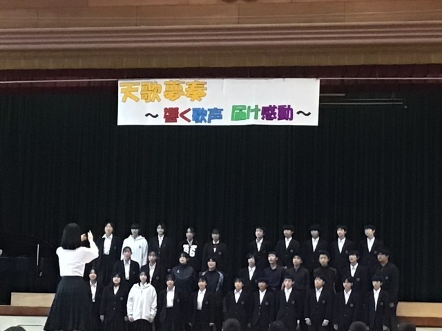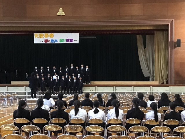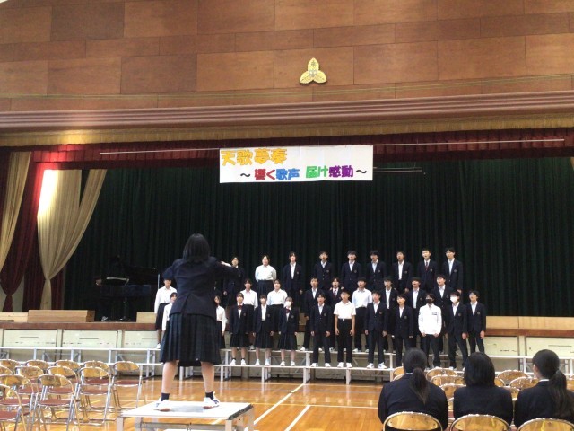 体育館では合唱練習が、行われていました。どの学級も練習してきた成果を発揮して、すてきな歌声を響かせていました。