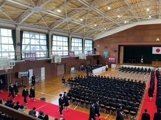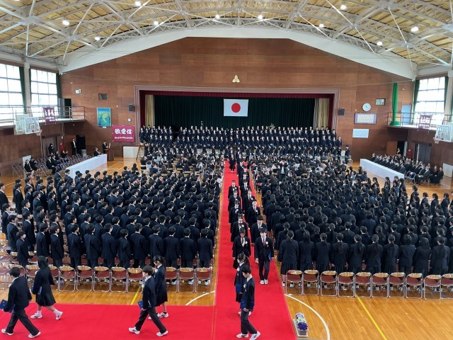 卒業生の合唱「群青」「正解」、在校生の合唱「地球星歌」が余韻を残し、感動的な卒業証書授与式になりました。