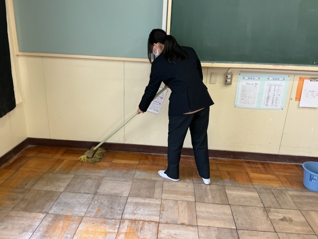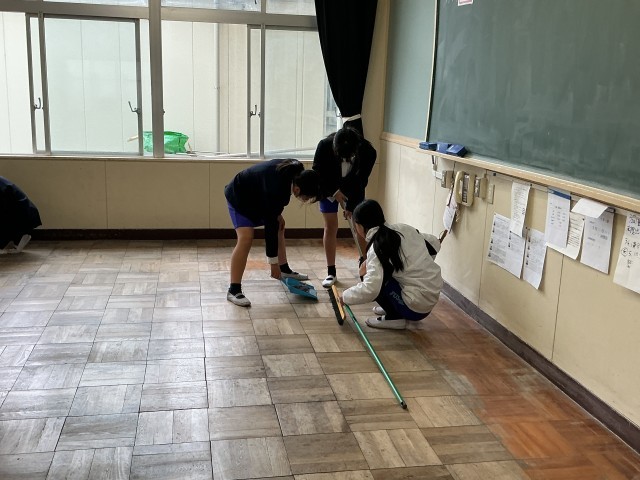本日の午後は、教室のワックスがけを行いました。みんなで協力して、真剣に取り組んでいました。