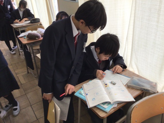 中学校での生活の様子を、先輩として頼もしい姿で見せることができました。