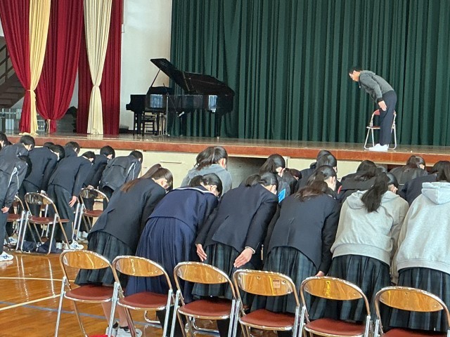 本日の5時間目は、卒業式の練習を行いました。合唱練習をしたり、礼を揃える練習をしたりしました。卒業式に向けて、高い意識で取り組むことができました。