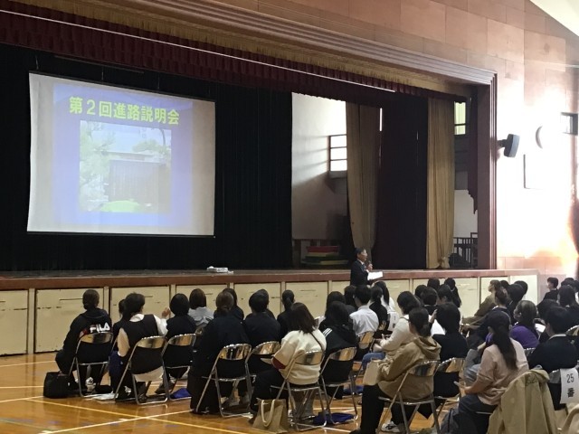 3年生 本日の午後、3年生の生徒と保護者を対象に進路説明会を行いました。 6月の説明会以降に3年生の多くの生徒が学校見学や説明会等にも参加し、自分の目指す道が具体的に見えてきた状態で本日の説明会に臨むことができました。 多くの保護者の皆様にも、ご多用の中参加していただきまして誠にありがとうございました。本日お子様に進路希望調査用紙を配布させていただきましたので、本人とご家庭でしっかりと話し合っていただき提出をしていただきますようお願いいたします。