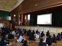 12月4日の学年集会では、修学旅行のガイダンスが行われました。先生たちの思いを伝えて、3日間の行程が紹介されました。期待に満ちた顔で、話を聞いていました。